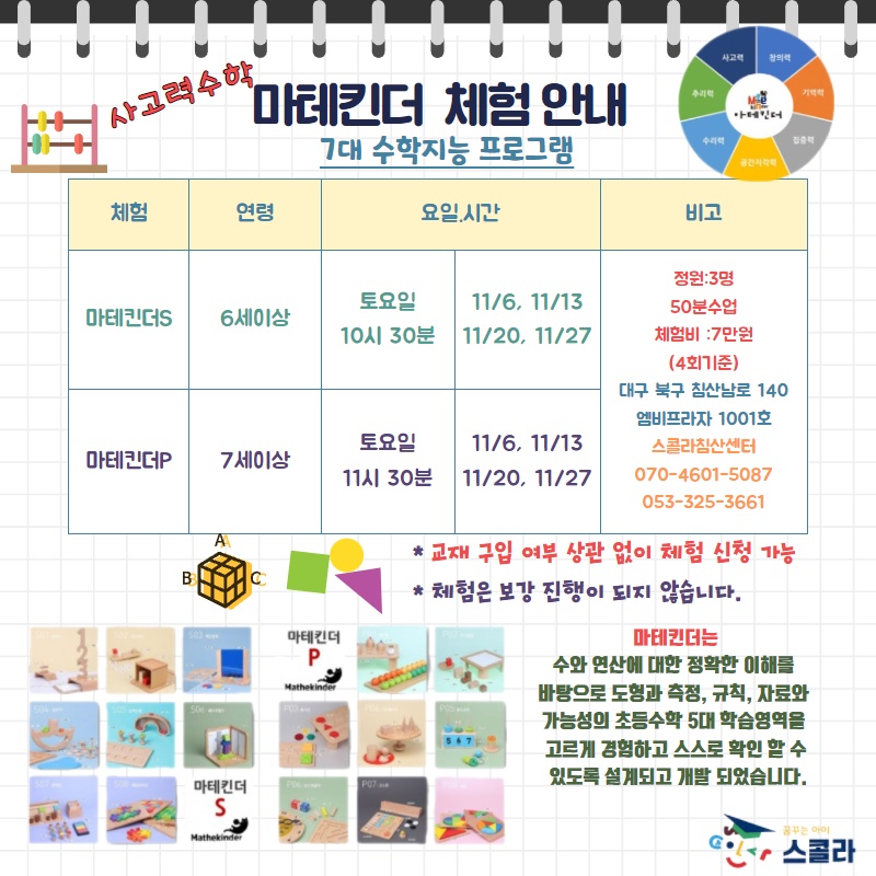 스콜라 침산 센터 11월 체험수업 안내 페이지 정보 작성자 최고관리자 작성일 21-10-15 13:10 조회 928회 댓글 0건 본문 스콜라 침산 센터 11월 체험수업 안내 페이스북 공유 트위터 공유 구글+ 공유 이전글스콜라 다사센터 11월 체험수업안내 다음글스콜라 신월성 센터 11월 체험수업 안내 목록 댓글목록 0 댓글목록 등록된 댓글이 없습니다.