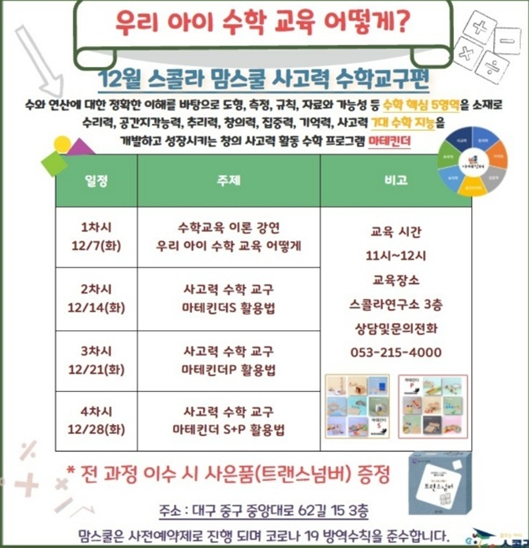 12월 스콜라 맘스쿨 사고력 수학교구 소개 페이지 정보 작성자 최고관리자 작성일 21-11-26 18:41 조회 914회 댓글 0건 본문 12월 스콜라 맘스쿨 사고력 수학교구 소개 페이스북 공유 트위터 공유 구글+ 공유 이전글스콜라 달서센터가 신규 오픈되었습니다 !!! 다음글몬테소리 센터 수업 안내 목록 댓글목록 0 댓글목록 등록된 댓글이 없습니다.